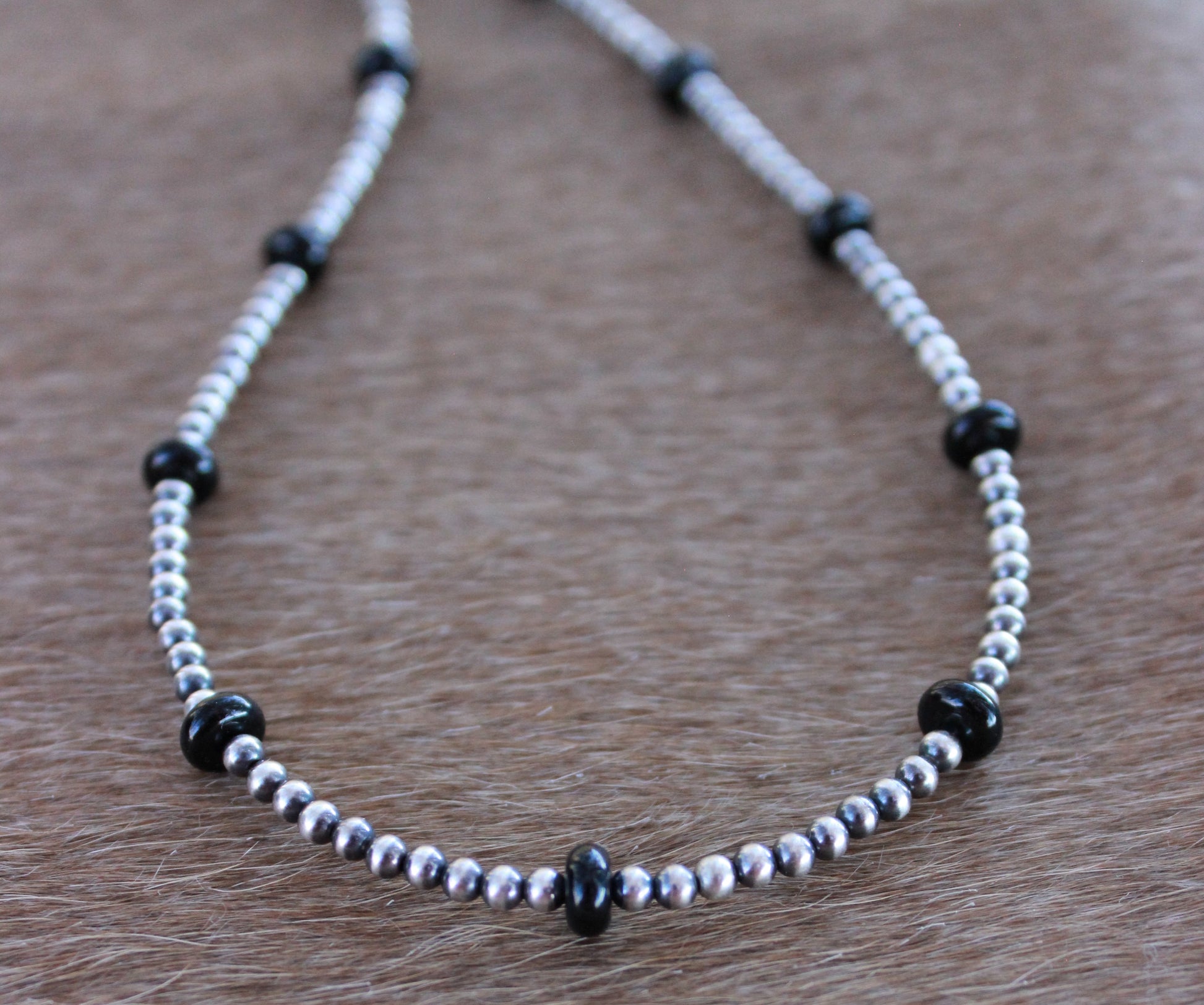 3mm sterling silver pearls & 6mm black onyx beads.