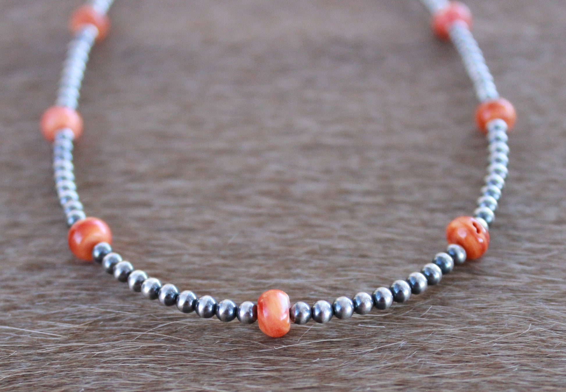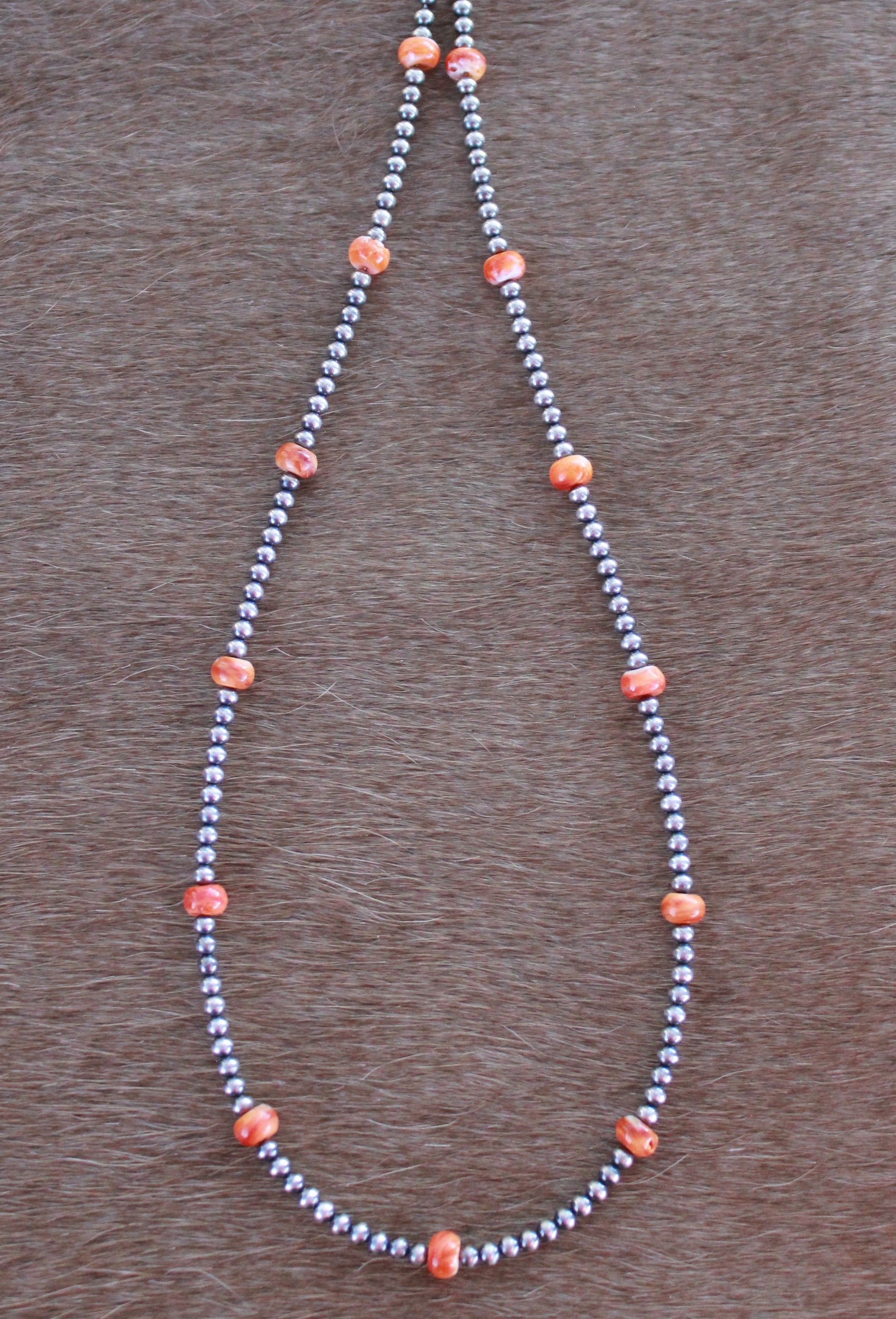 3mm sterling silver pearls & 6mm genuine orange spiny beads.