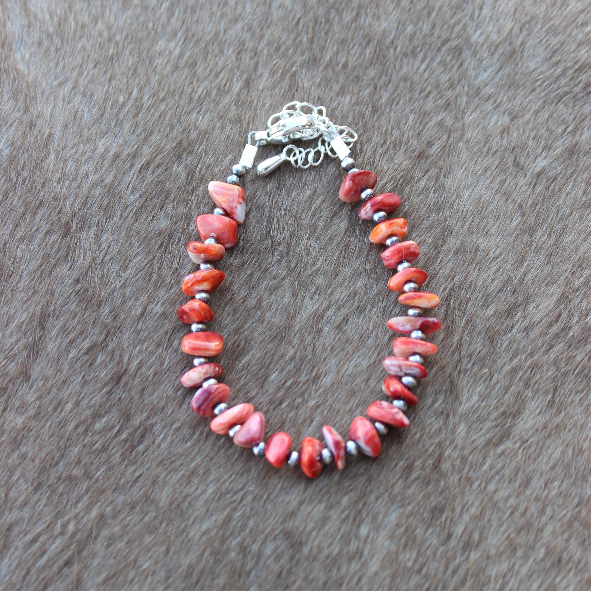 2.5 mm pearls with red spiny oyster.