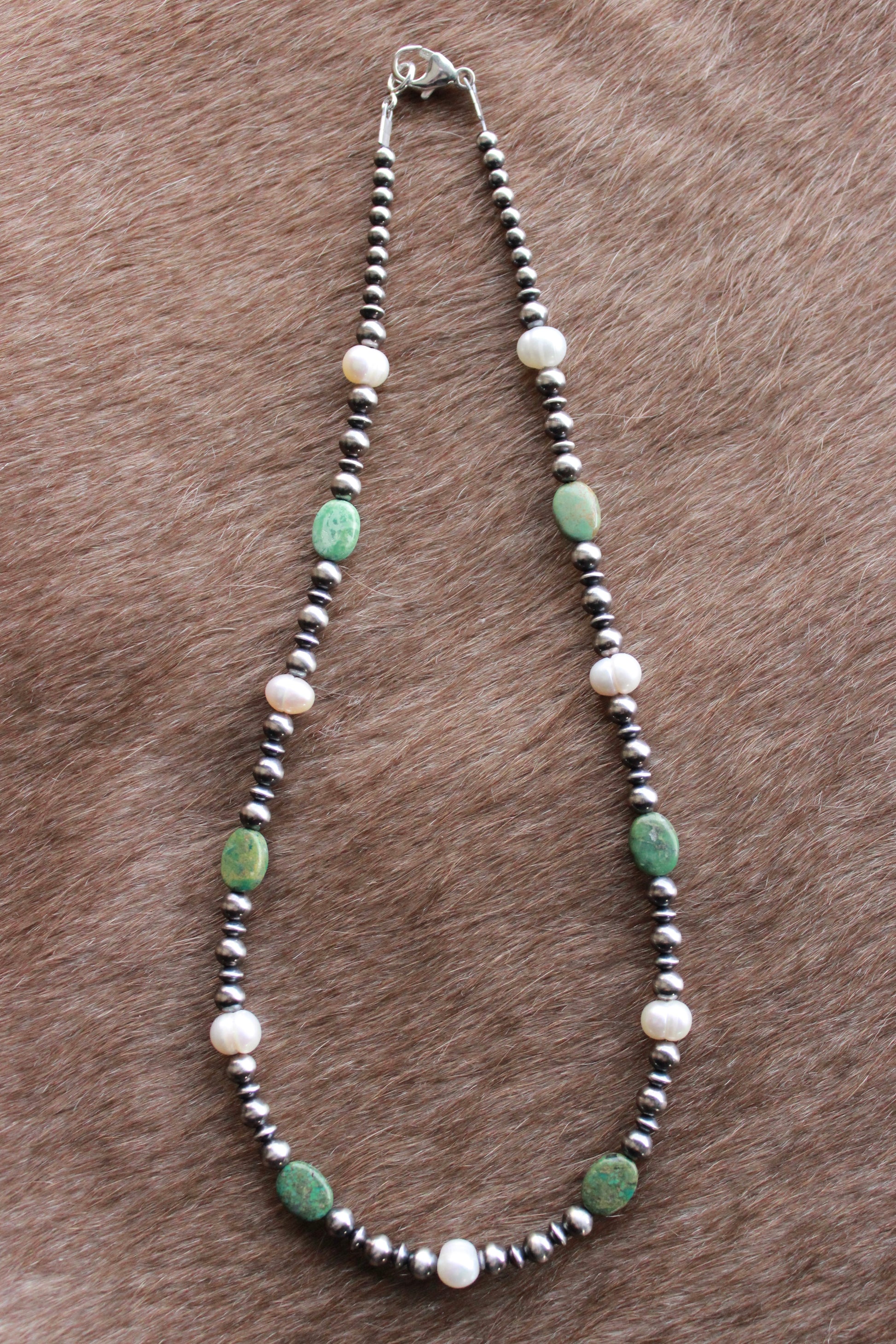 3 mm, 4 mm and saucer pearls with hubei turquoise and freshwater pearls.
