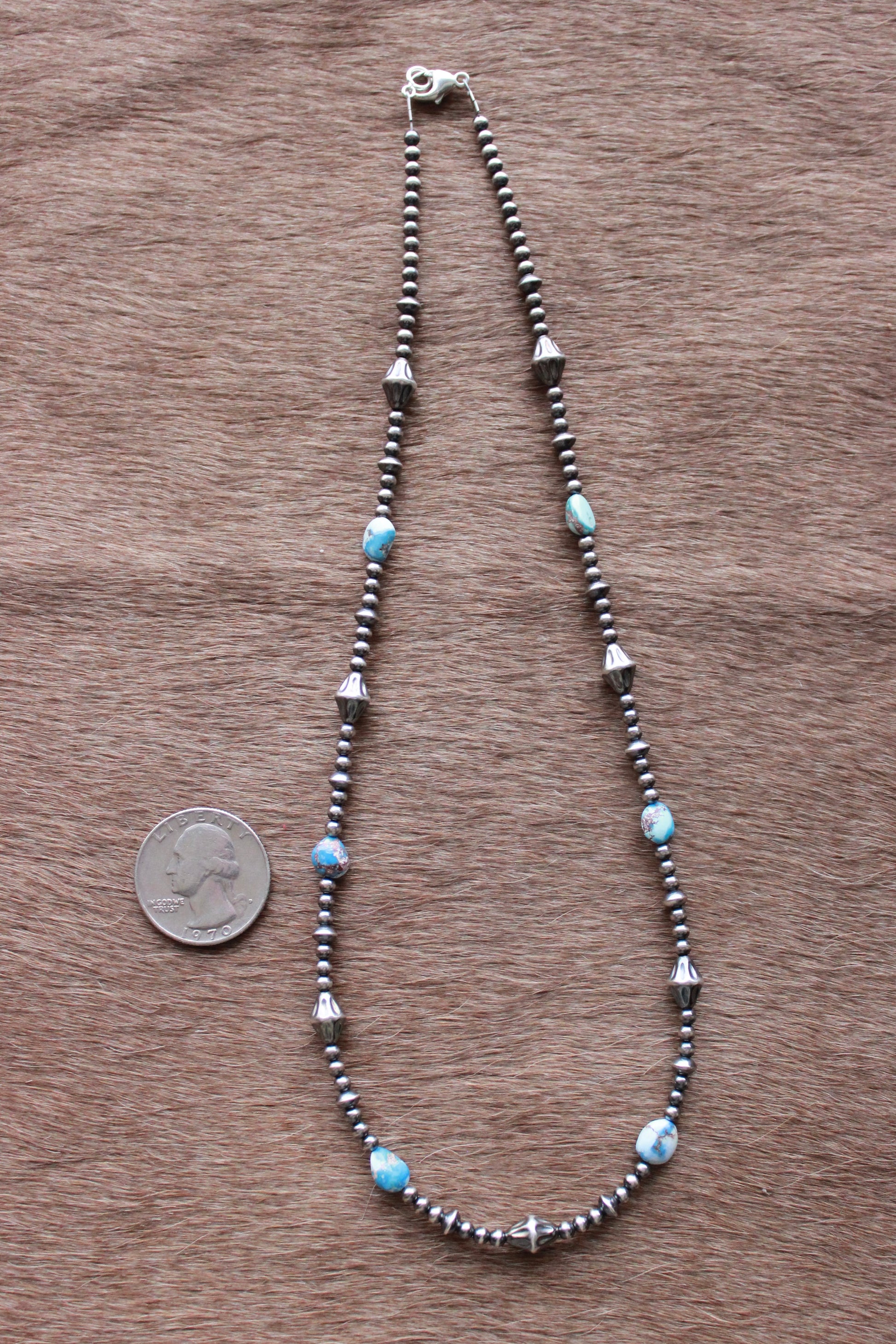 3 mm, saucer and textured oval pearls with Golden Hills Turquoise.